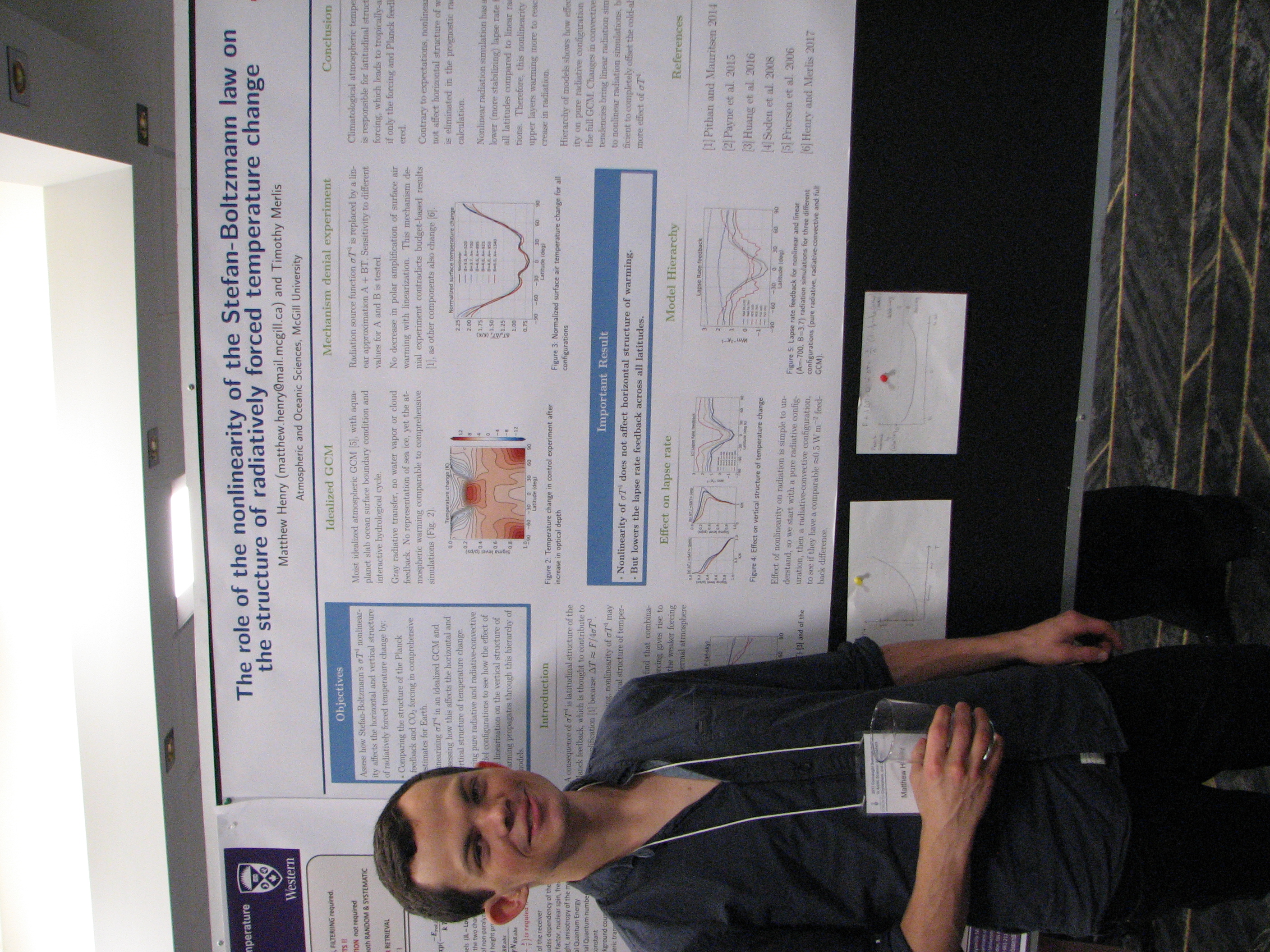 Speakers and panelists include Amir Aliabadi (U Guelph), Lukas Arenson (BGC Engineering Inc.), Rachel Chang (Dalhousie), Claude Duguay (U Waterloo), Dan Falk (Science Journalist), David Hudak (Meteorological Research Division, Environment and Climate Change Canada - ECCC), Steve Howell (Climate Research Division, ECCC), Alexandra Jahn (U Colorado Boulder), Paul Kushner (U Toronto), Kent Moore (U Toronto), Kerri Pratt (U Michigan), Michael Sigmond (Canadian Centre for Climate Modelling and Analysis, ECCC), and Francis Zwiers (Pacific Climate Impacts Consortium). Students are also participating in an introductory Jamboree, a science writing workshop, and a career panel discussion, and presenting their own research during a poster session.